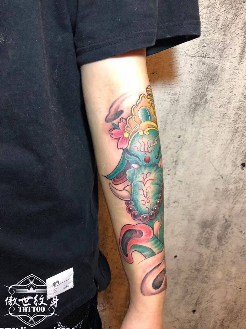 当前位置: 首页 >福建省南平市纹身店-傲世家族刺青纹身图案>彩色象神纹身图片