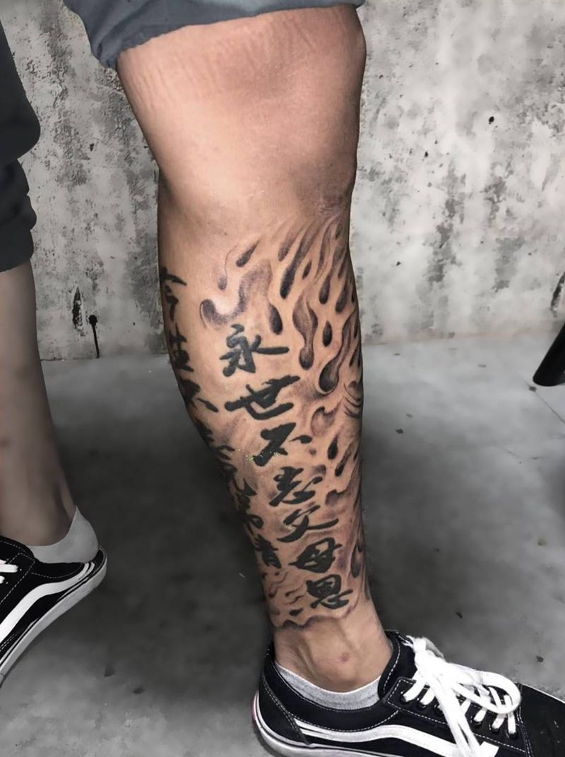 • T网红王老大花腿龙纹身图片_腿部新传统纹身图案