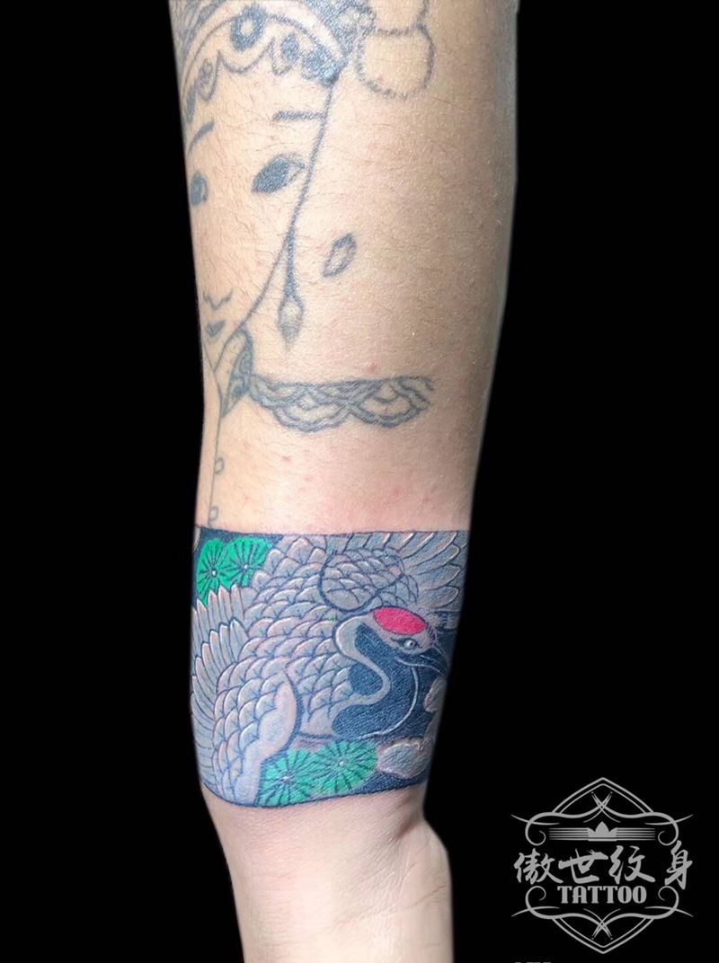 手环鹤纹身图片_手臂水彩纹身图案