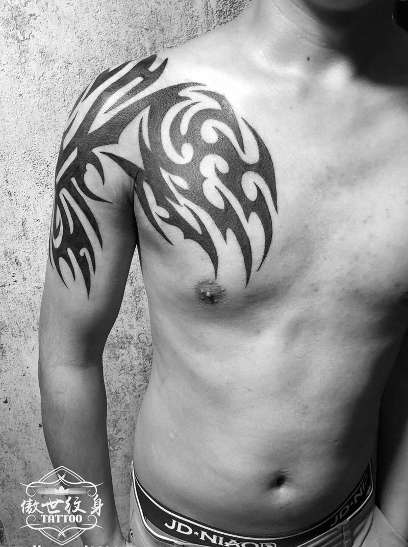 • 纹身吧推荐的披肩图腾半胛纹身图案作品展示