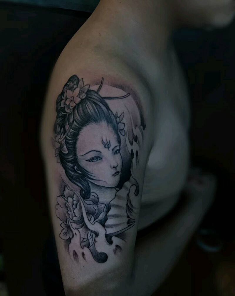 当前位置: 首页 >福建省泉州市纹身店-铭刺青纹身图案>艺妓纹身图片