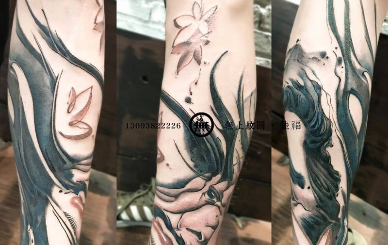 当前位置: 首页 >福建省漳州市纹身店-福赐刺青纹身图案>包小腿写意人物纹身图片