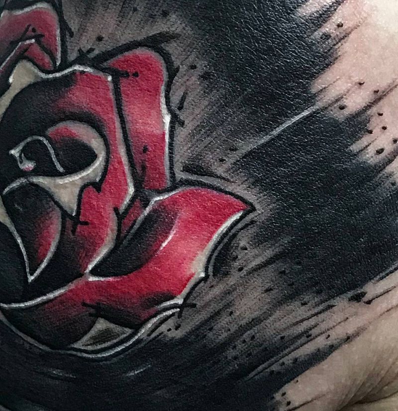 • 手背潮流时尚的玫瑰花眼睛纹身图案