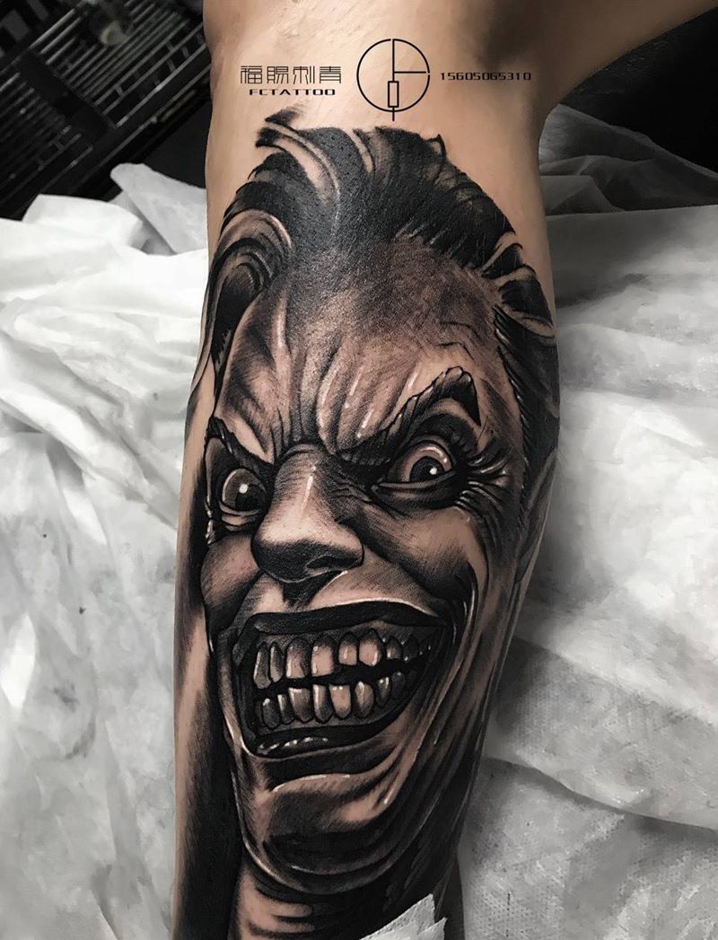 • T包小腿吹火男+阿多福纹身图片_腿部老传统新传统吹火男阿