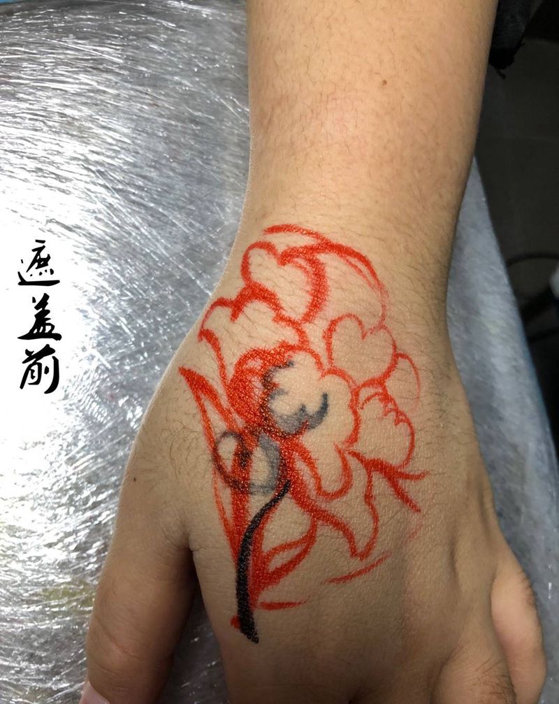 • 手背潮流时尚的玫瑰花眼睛纹身图案