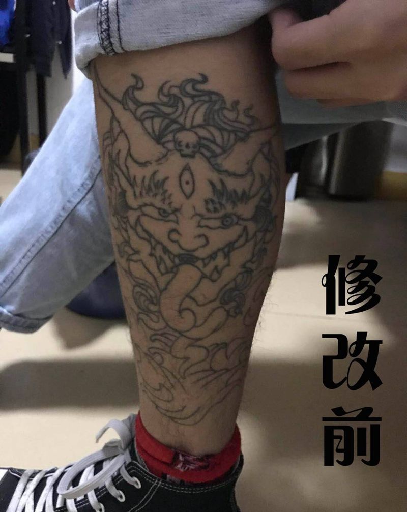 • T网红王老大花腿龙纹身图片_腿部新传统纹身图案