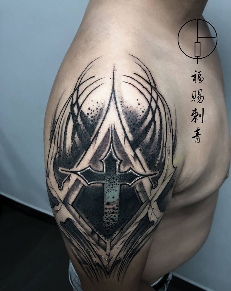 • 纹身吧推荐的披肩图腾半胛纹身图案作品展示