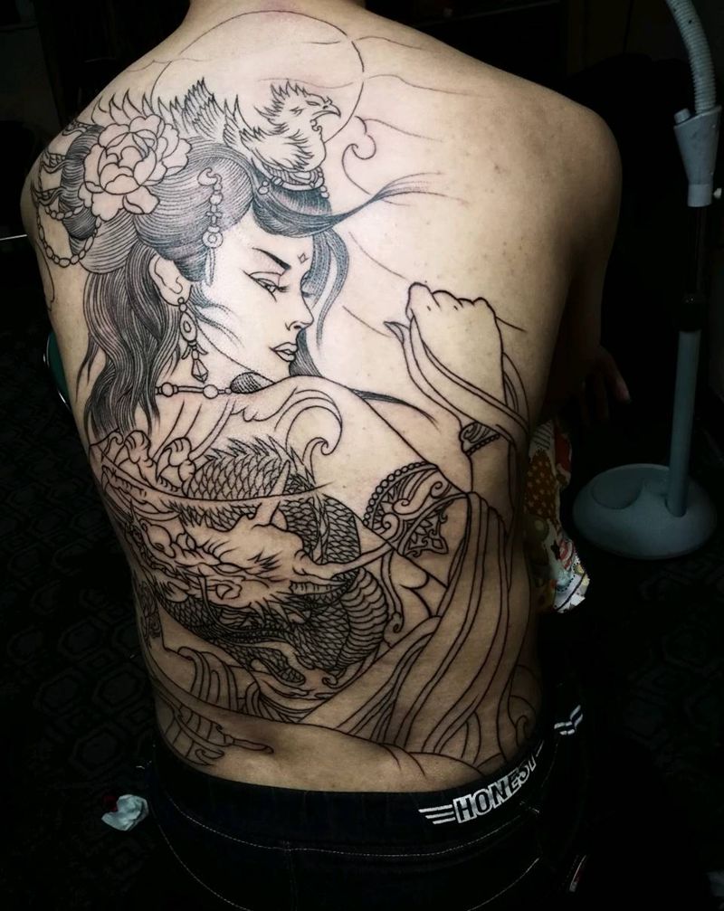 满背艺妓效果纹身图片