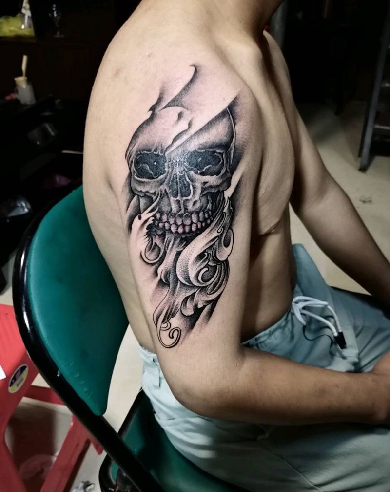 当前位置: 首页 >福建省泉州市纹身店-卓越艺术纹刺工作室纹身图案>大臂骷髅纹身图片