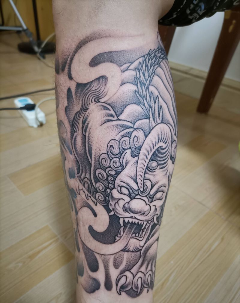 • T网红王老大花腿龙纹身图片_腿部新传统纹身图案
