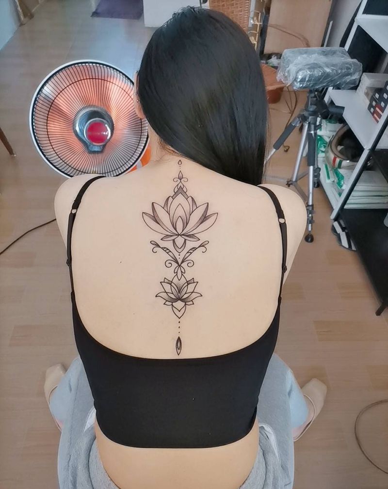 素花纹身图片_背部几何纹身图案