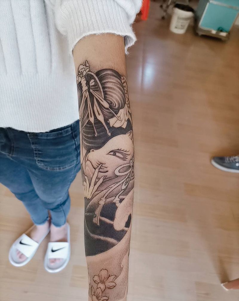 当前位置: 首页 >福建省漳州市纹身店-九顶纹身纹身图案>艺妓纹身图片_手臂新传统纹身图案