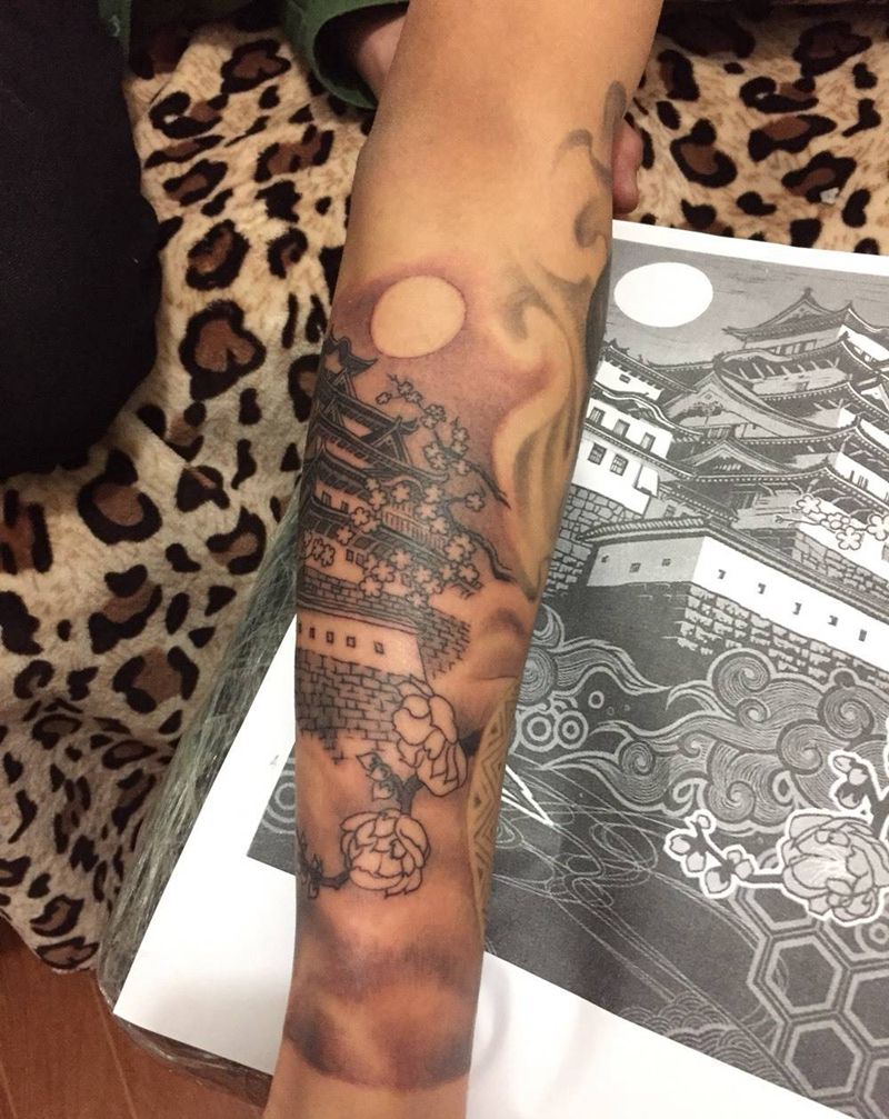 当前位置: 首页 >福建省漳州市纹身店-九顶纹身纹身图案>花村纹身图片_手臂人物成品纹身图案