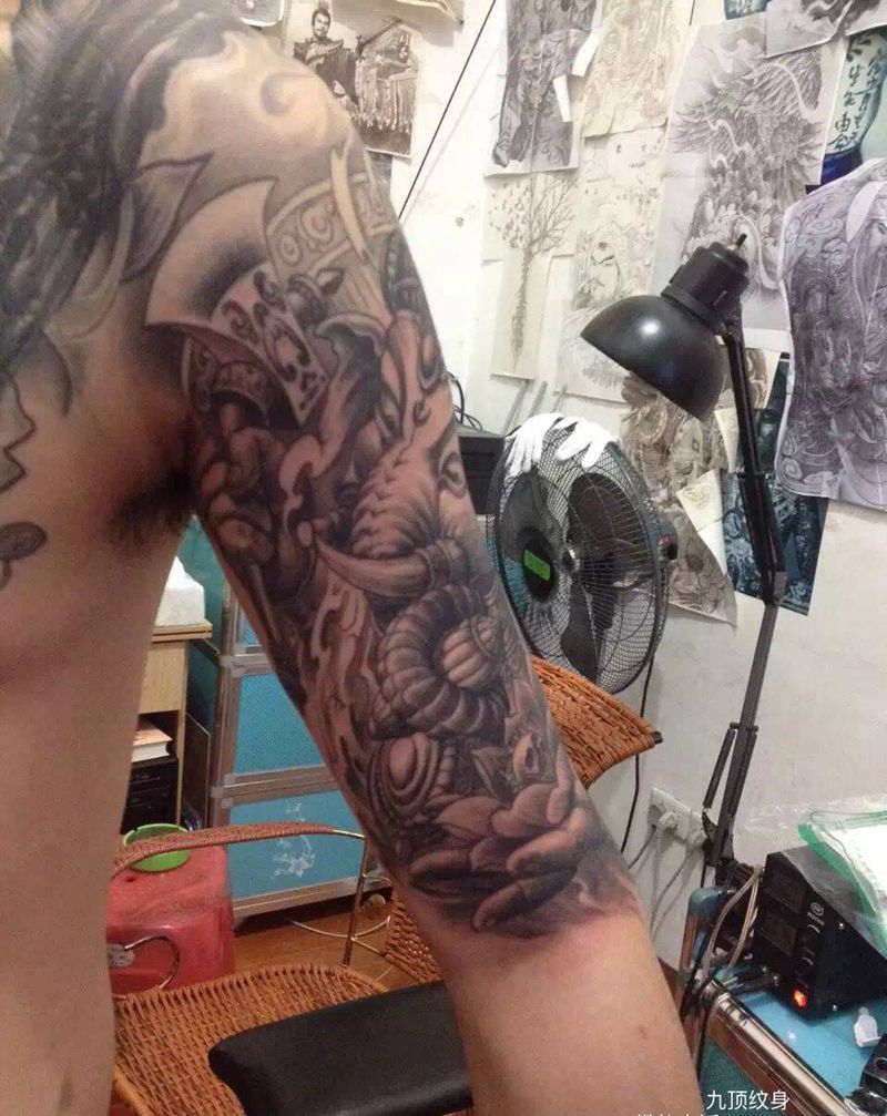 当前位置: 首页 >福建省漳州市纹身店-九顶纹身纹身图案>像纹身图片_成品手臂传统动物鬼神纹身图案