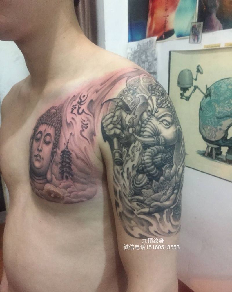 当前位置: 首页 >福建省漳州市纹身店-九顶纹身纹身图案>象神纹身图片
