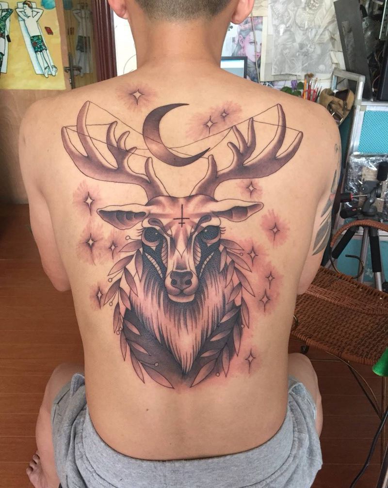 黑灰满背纹身图案