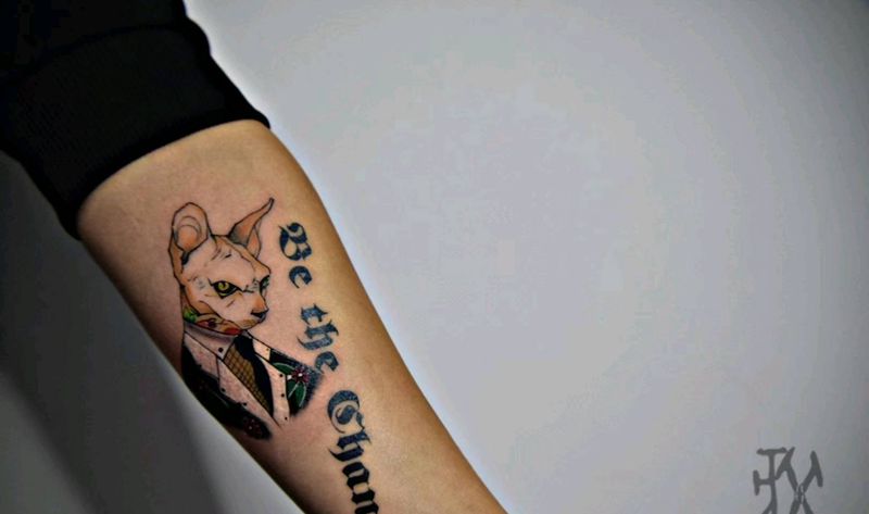 比魯斯貓,西装暴徒纹身图片_手部Old School纹身图案