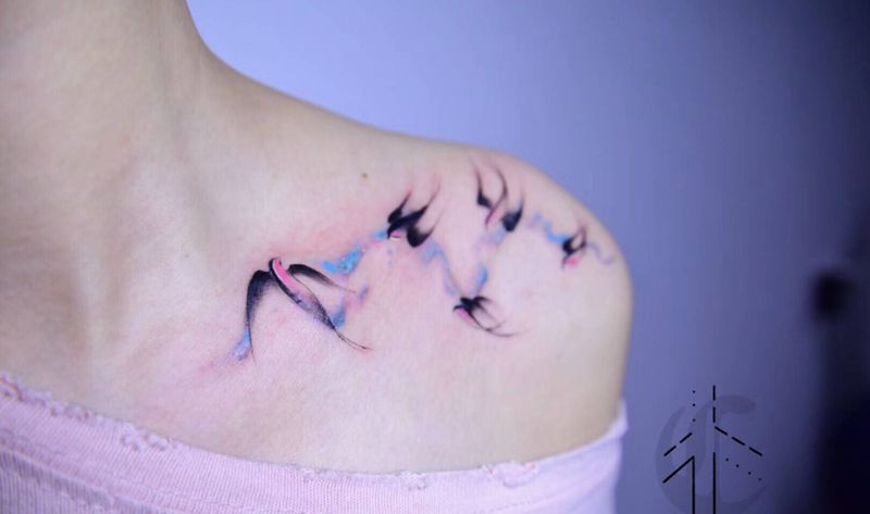 國風燕子纹身图片_肩部水墨新传统纹身图案