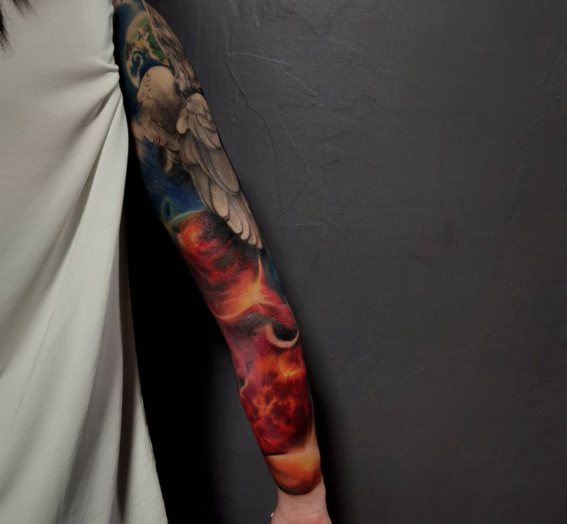 当前位置: 首页 >福建省龙岩市纹身店-噬魂纹身纹身图案>星空纹身图片_手臂欧美写实纹身图案
