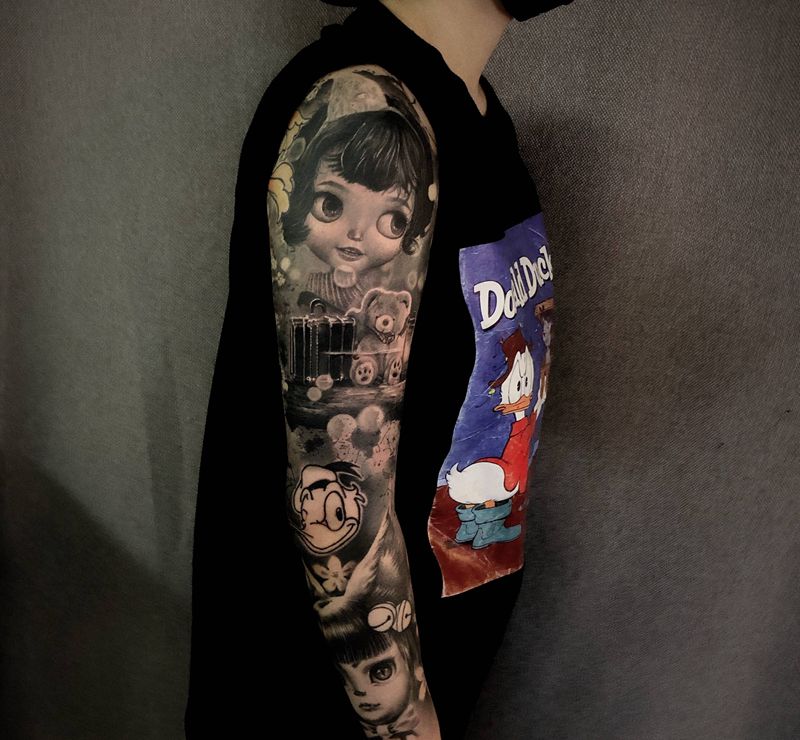 当前位置: 首页 >福建省龙岩市纹身店-噬魂纹身纹身图案>童趣童心纹身图片_手部手臂欧美写实水墨纹身图案