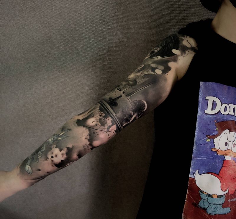 当前位置: 首页 >福建省龙岩市纹身店-噬魂纹身纹身图案>童趣童心纹身图片_手部手臂欧美写实水墨纹身图案