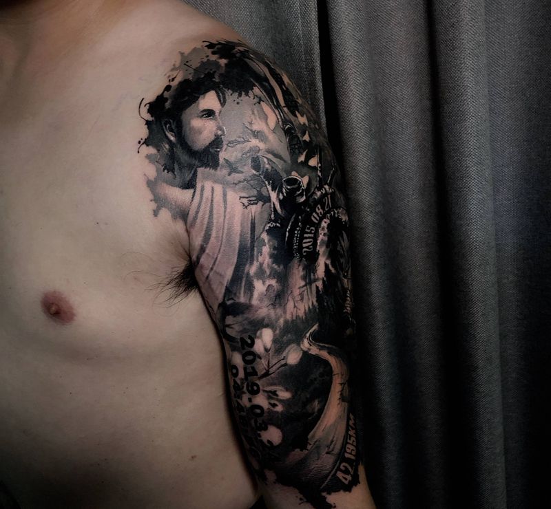 当前位置: 首页 >福建省龙岩市纹身店-噬魂纹身纹身图案>重生纹身图片_手臂手部欧美写实水墨纹身图案