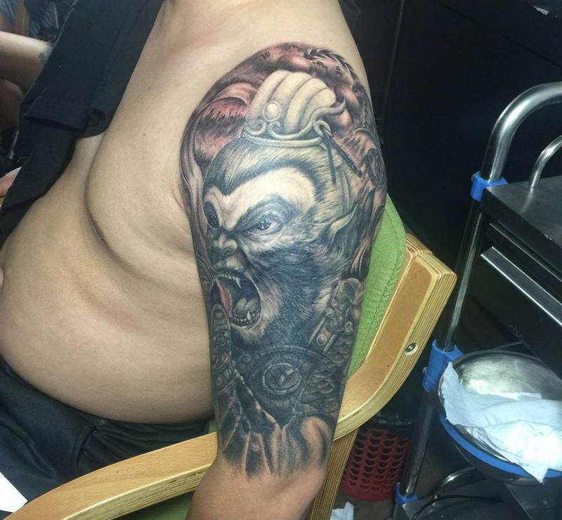 当前位置: 首页 >福建省龙岩市纹身店-噬魂纹身纹身图案>猴子遮盖纹身图片_成品手臂传统纹身图案