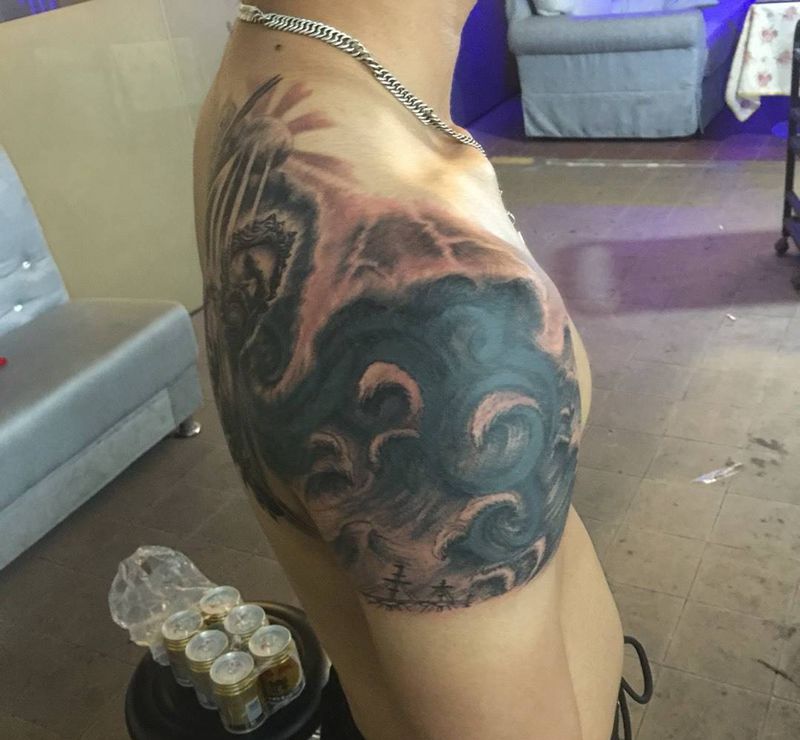 • 纹身吧推荐的披肩图腾半胛纹身图案作品展示