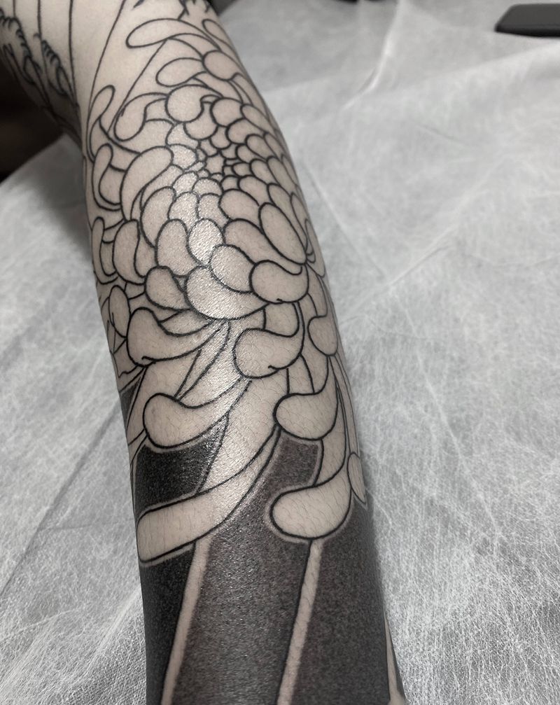 • T网红王老大花腿龙纹身图片_腿部新传统纹身图案