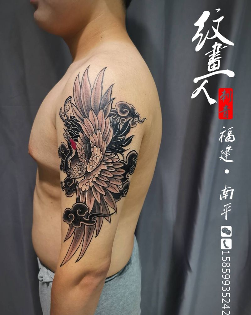 当前位置: 首页 >福建省南平市纹身店-南平纹画人刺青纹身图案>仙鹤纹身图片_手臂新传统纹身图案
