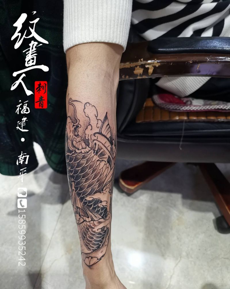 当前位置: 首页 >福建省南平市纹身店-南平纹画人刺青纹身图案>单针小臂鲤鱼纹身图片_手臂新传统纹身图案