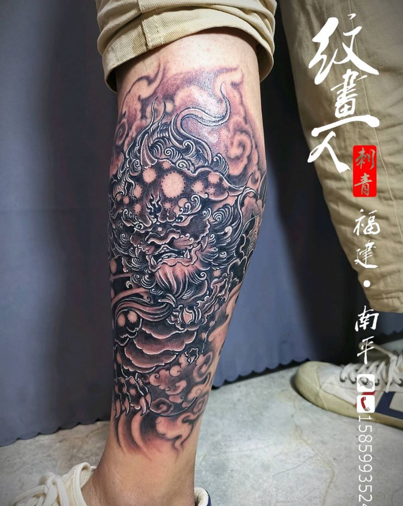 当前位置: 首页 >福建省南平市纹身店-南平纹画人刺青纹身图案>唐狮子纹身图片_腿部新传统纹身图案