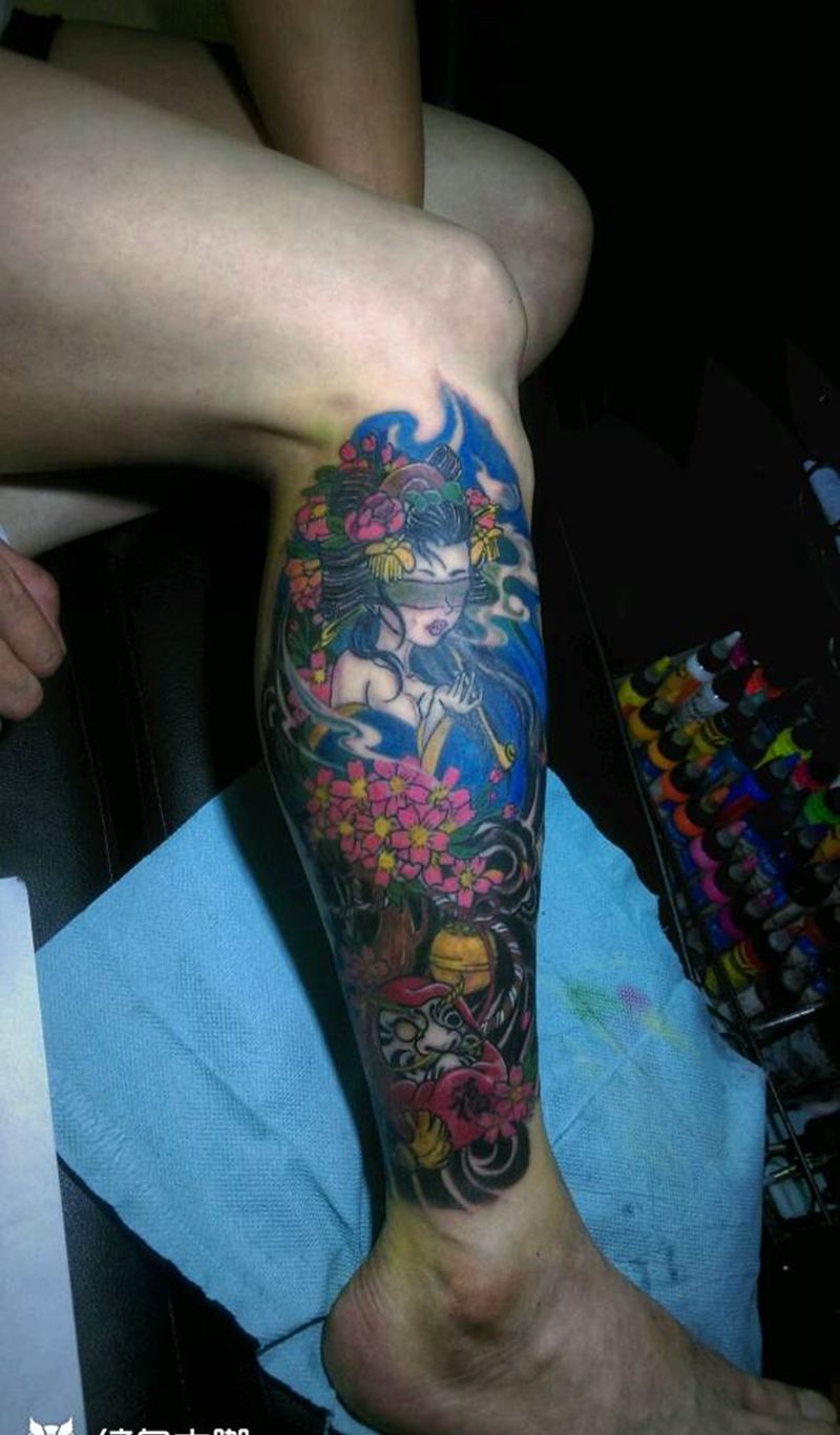 当前位置: 首页 >福建省南平市纹身店-南平纹画人刺青纹身图案>小腿艺妓纹身图片