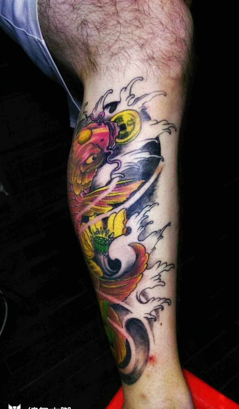 当前位置: 首页 >福建省南平市纹身店-南平纹画人刺青纹身图案>重彩小腿鲤鱼纹身图片