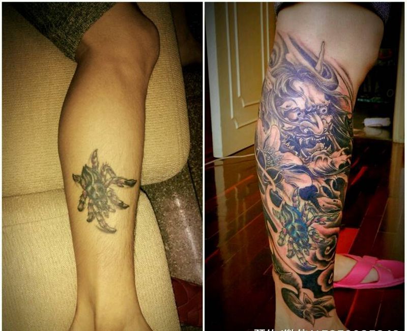 当前位置: 首页 >福建省南平市纹身店-南平纹画人刺青纹身图案>般若小腿衔接旧图纹身图片