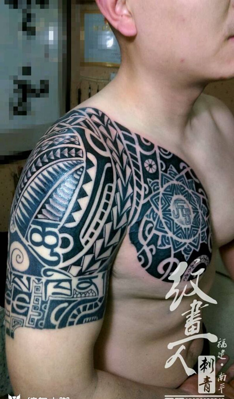 玛雅图腾半钾纹身图片_胸部手臂欧美习俗几何图腾原创成品纹身图案