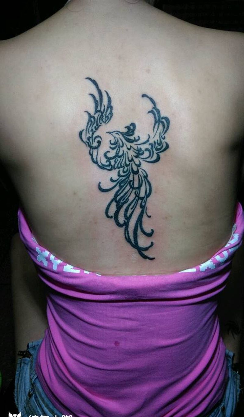 后背图腾凤凰纹身图片_背部图腾纹身图案