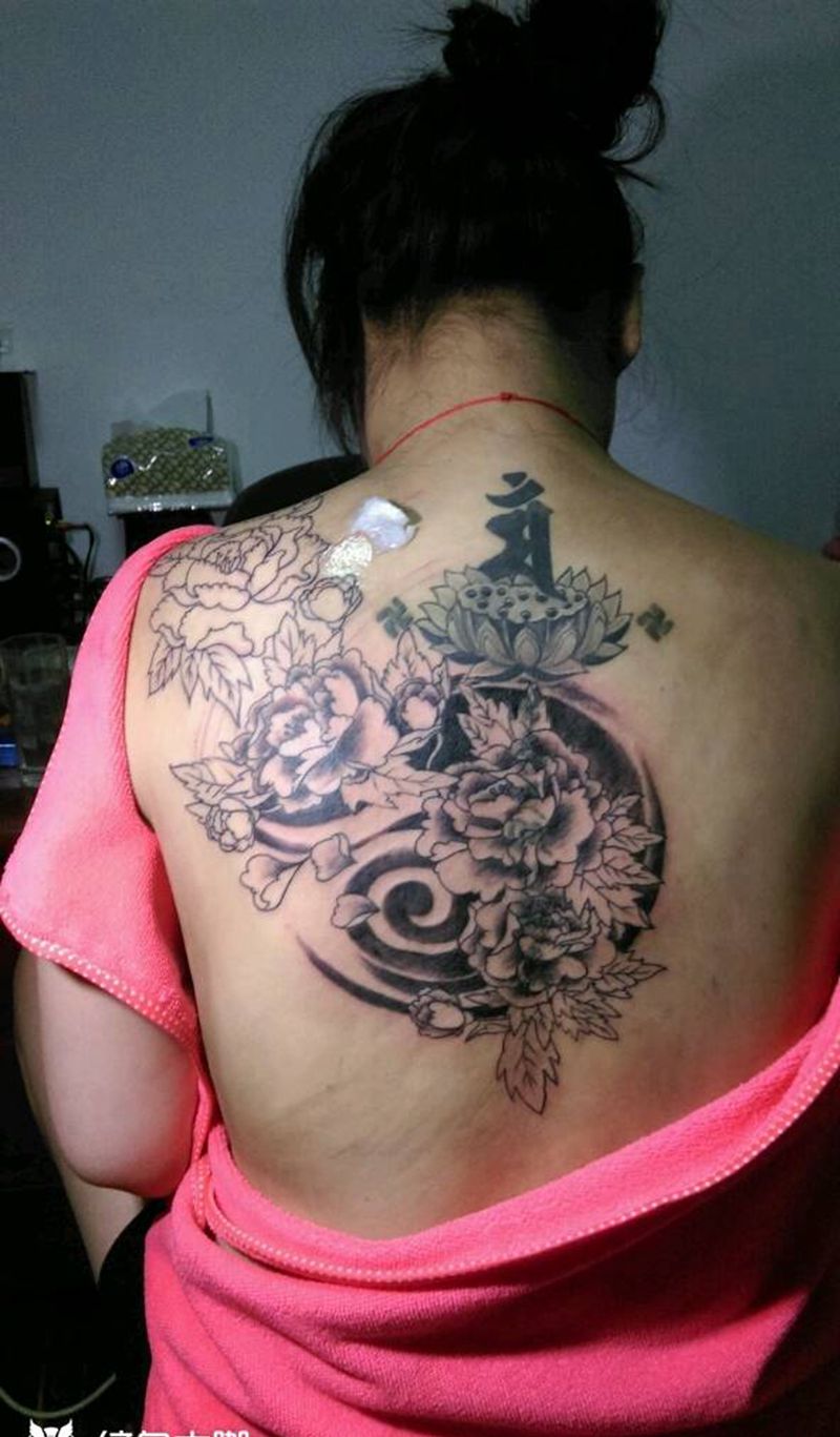 • 黑灰满背纹身图案