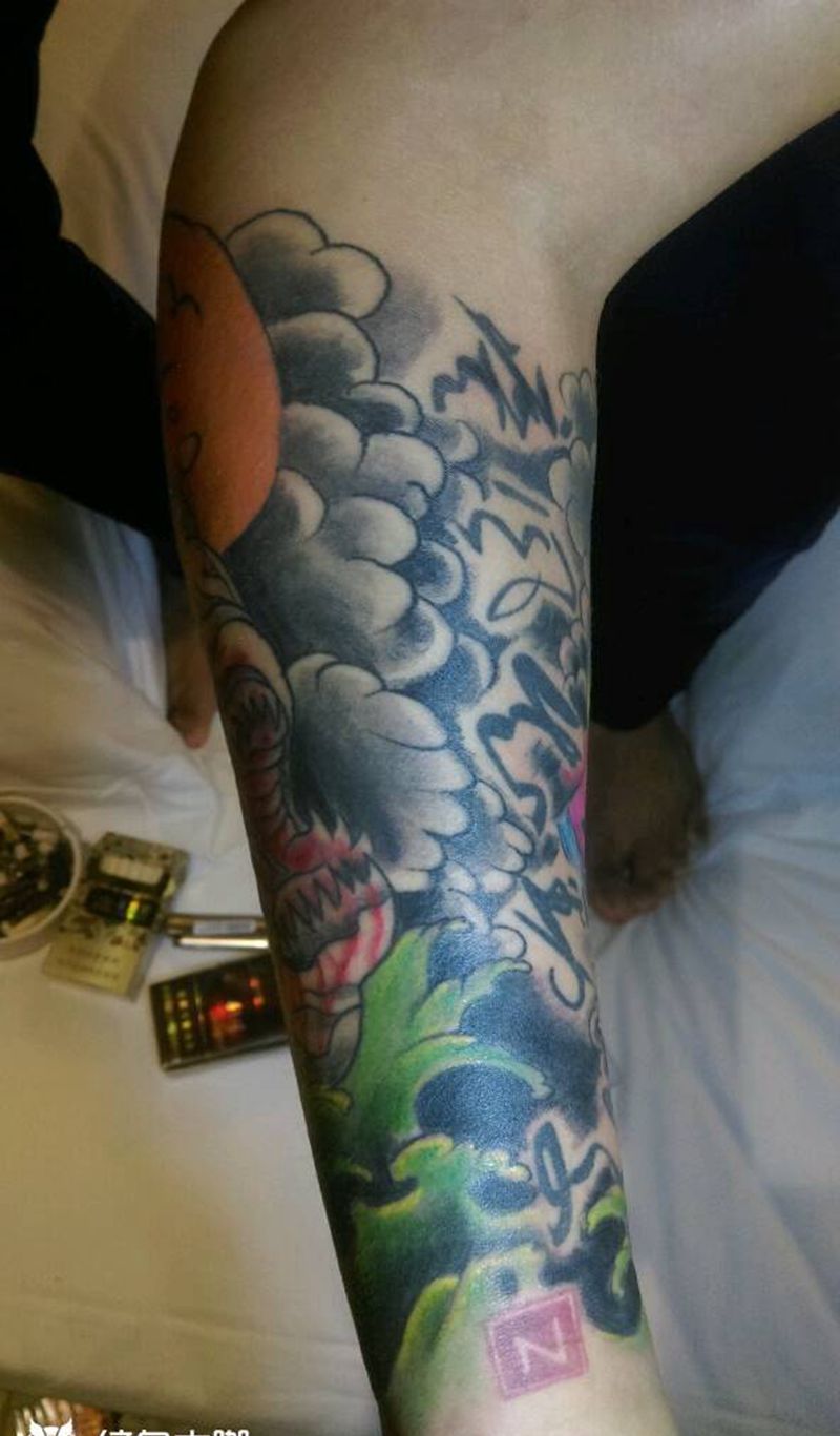 原创重彩包臂。纹身图片_手部欧美动物宗教原创纹身图案