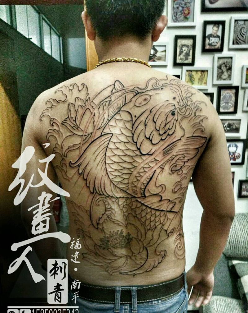 全背鲤鱼线图纹身图片_背部传统动物成品纹身图案
