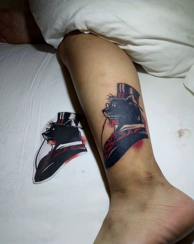 • T包小腿吹火男+阿多福纹身图片_腿部老传统新传统吹火男阿