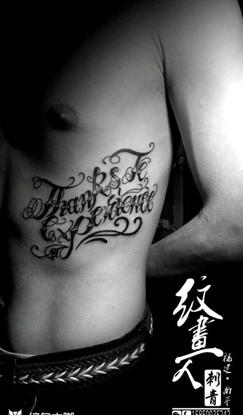 • T关于私处得爱!纹身图片_成品腹部清新字符图腾纹身图案