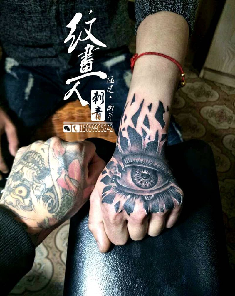 3D眼睛纹身纹身图片_手部欧美写实几何成品纹身图案