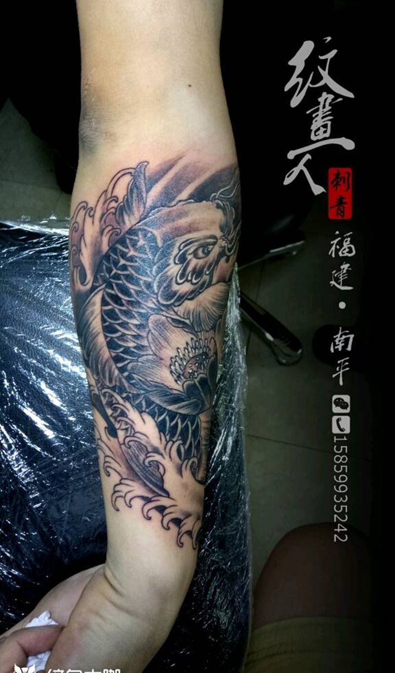 黑灰鲤鱼纹身纹身图片