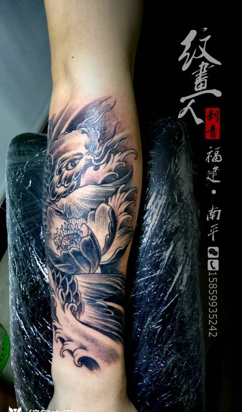 黑灰鲤鱼纹身纹身图片