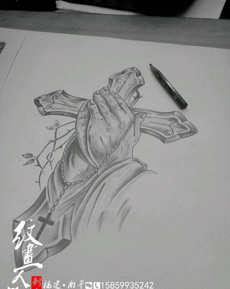 • H5款精美的小型十字架纹身 迷你纹身图案