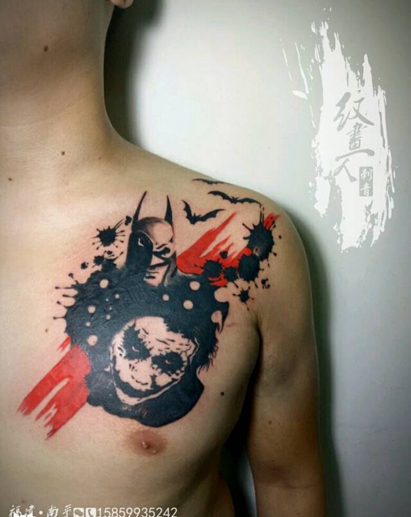 当前位置: 首页 >福建省南平市纹身店-南平纹画人刺青纹身图案>蝙蝠侠与小丑 (遮盖)纹身图片