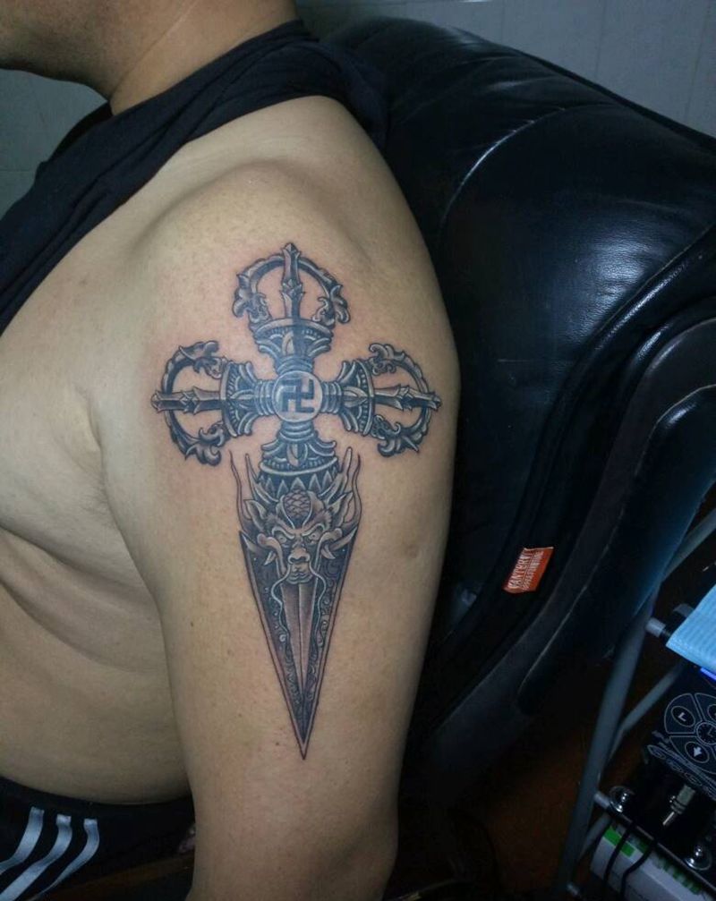 当前位置: 首页 >福建省南平市纹身店-南平纹画人刺青纹身图案>降魔杵纹身图片