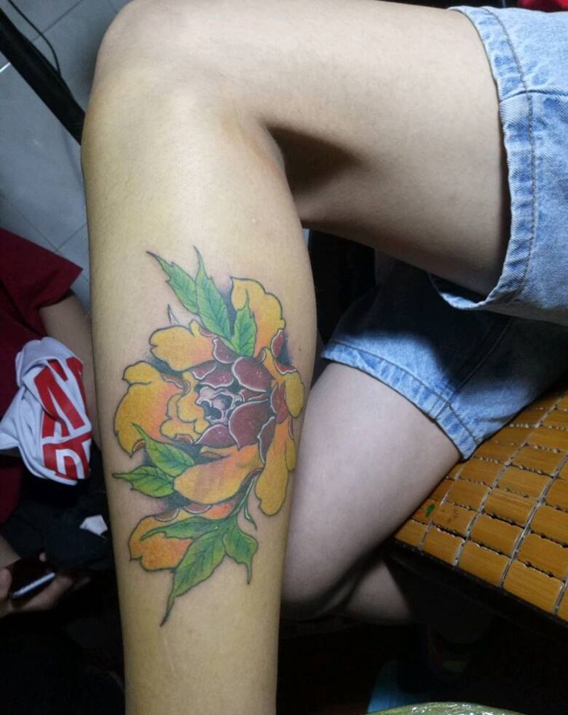 • T网红王老大花腿龙纹身图片_腿部新传统纹身图案