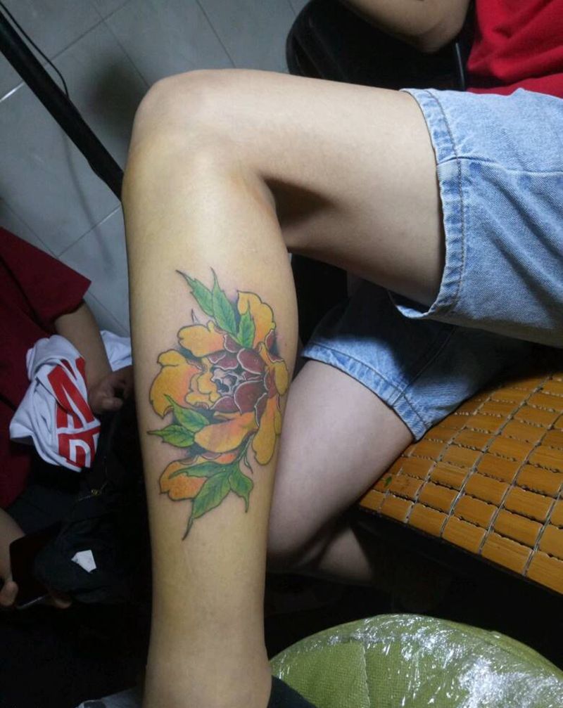 • T网红王老大花腿龙纹身图片_腿部新传统纹身图案
